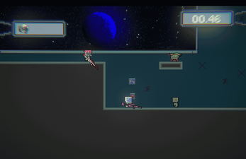 As you progress through the 5 handcrafted levels, you’ll unlock a jetpack — but it’s just as unreliable. Every second, it rolls a die… roll a 1, and your jetpack shuts down mid-air!